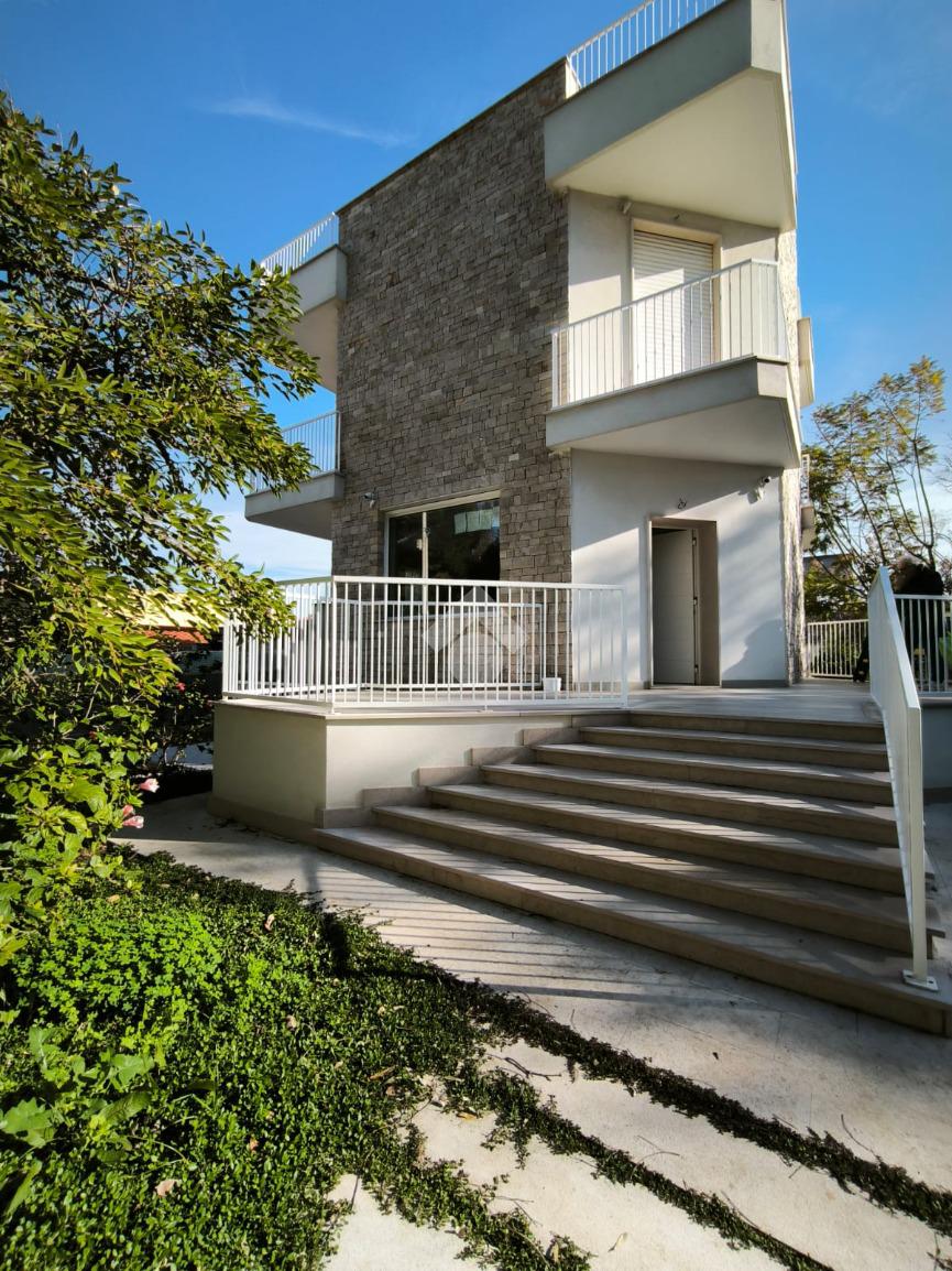 Negli immediati pressi di Torre a Mare ed a pochi passi dal mare, si propone in vendita una villa singola di recentissima costruzione, capace di garantire un'efficienza energetica ottimale. Questa residenza signorile si presenta con rifiniture di alta qualità che ne esaltano l'eleganza. Distribuita su due livelli, oltre a tavernetta e terrazza, la villa offre complessivamente sei vani spaziosi, tra cui ben quattro camere da letto. I tre bagni, modernamente arredati, assicurano comfort e praticità. Un ascensore interno collega comodamente i vari piani, incluso il terrazzo, mentre il giardino privato che la circonda rappresenta un'oasi di tranquillità. Il riscaldamento e raffrescamento a pavimento, il cappotto termico, l'impianto fotovoltaico e solare termico, l'impianto di allarme, gli infissi a taglio termico in legno/alluminio, le tapparelle elettriche coibentate ed il già citato ascensore interno sono solo alcune delle dotazioni dell'immobile, Questa proprietà è una soluzione abitativa che coniuga stile e funzionalità, perfetta per chi cerca un'abitazione raffinata in una zona molto tranquilla di Bari.
